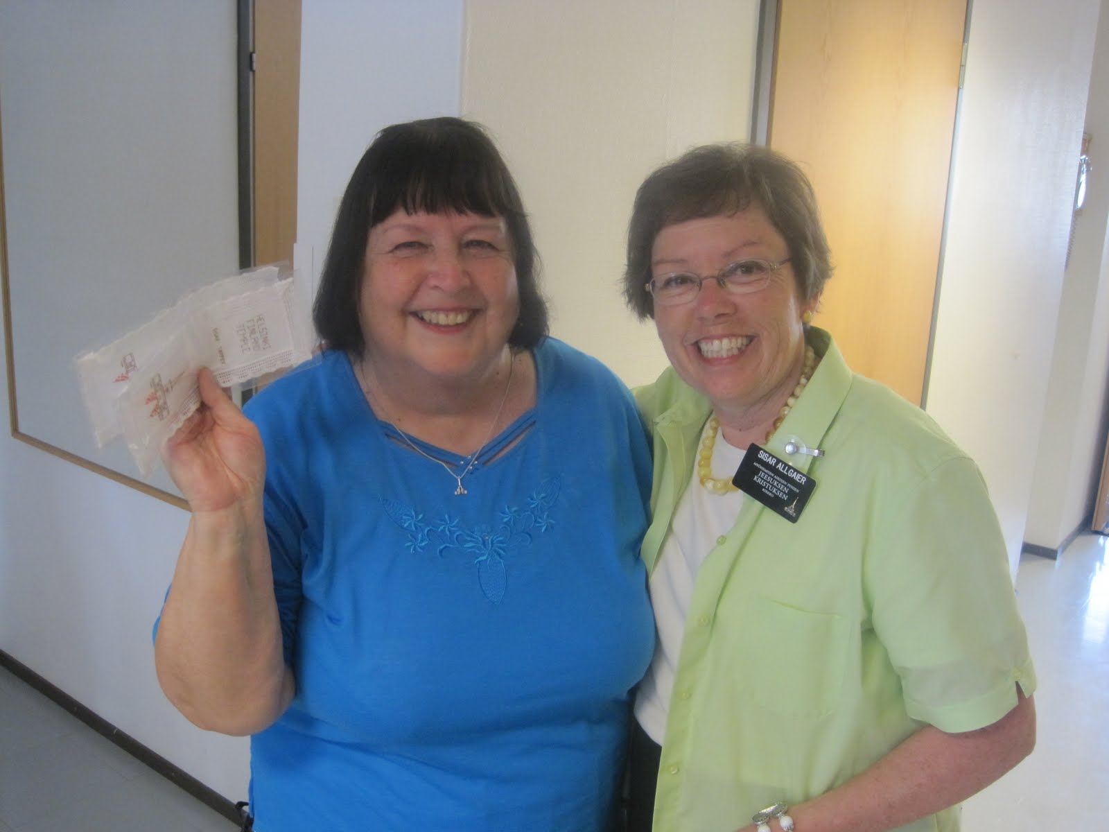 Sisar Haanpää was so excited when I gave her bookmark to her. And she accepted Sisar Tapper's bookmark as well. You see, Sisar Tapper had major surgery about 5 weeks ago. She had come to church for the first time since her surgery on Sunday. She was only there for Sacrament Meeting and then had to go home. It was terribly hot.....she didn't feel too well.